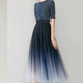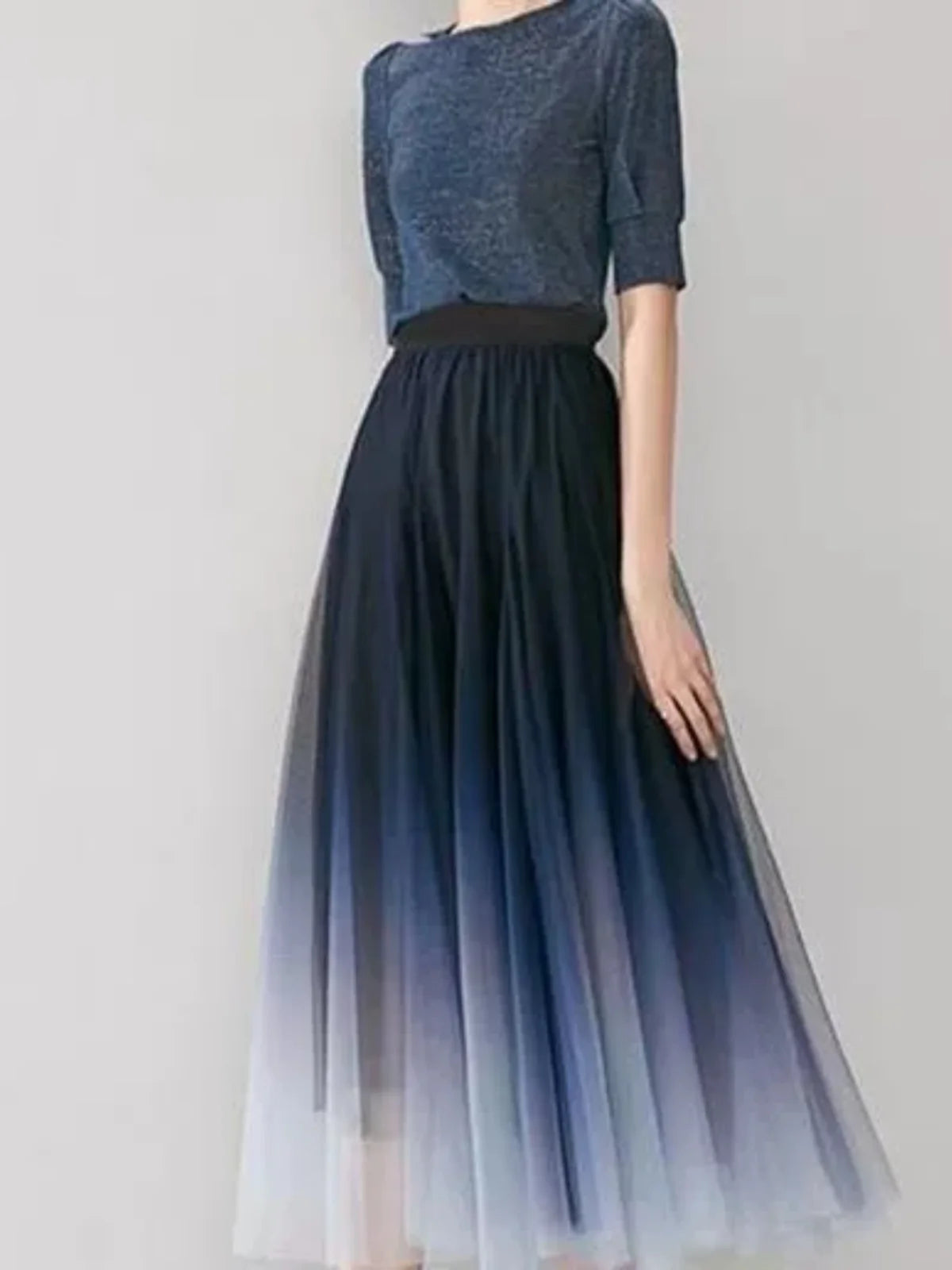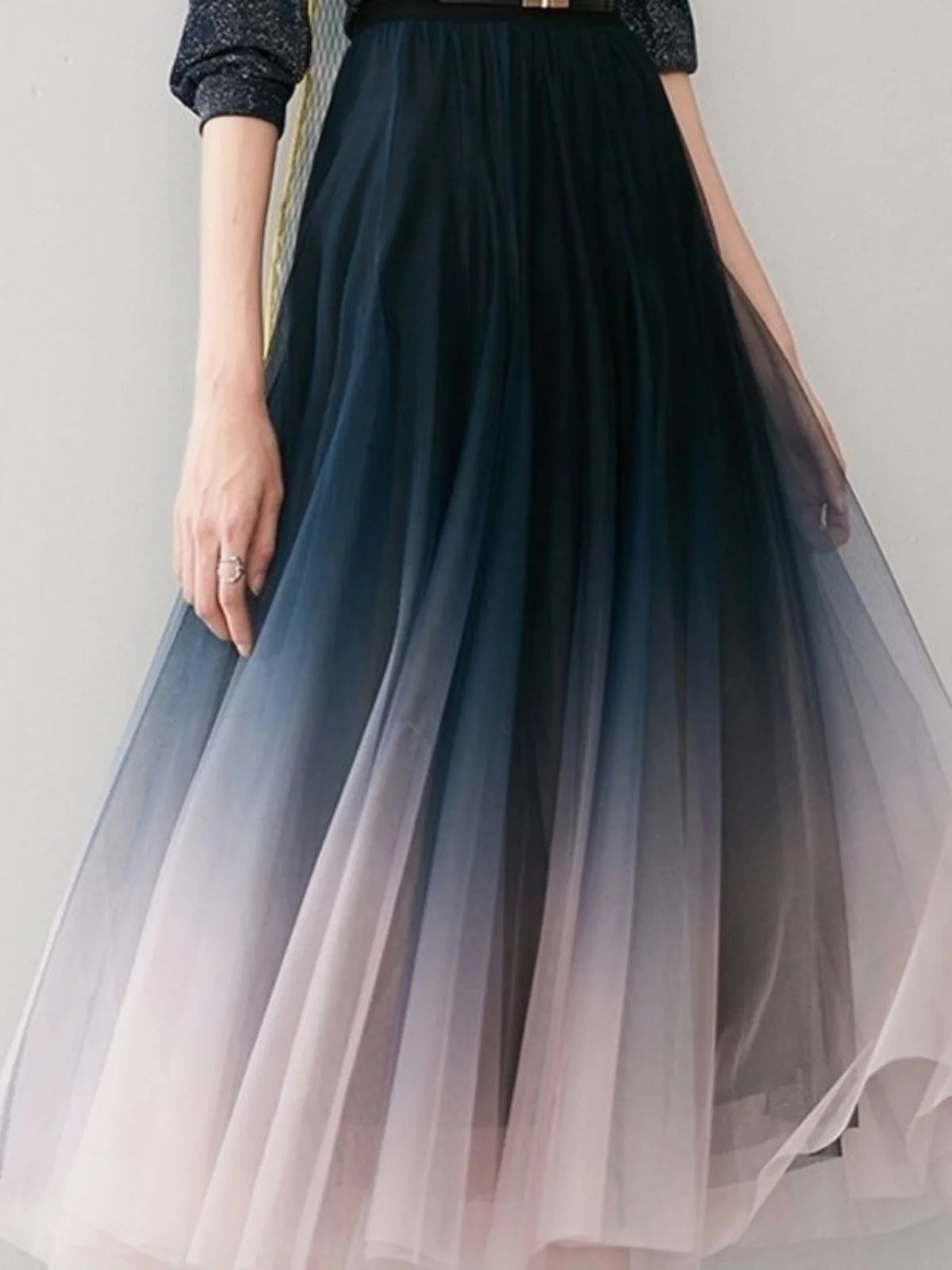 Featuring a gradient color mesh, this skirt adds a touch of elegance and sophistication to your wardrobe, perfect for any occasion.