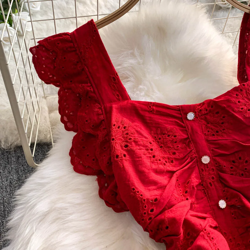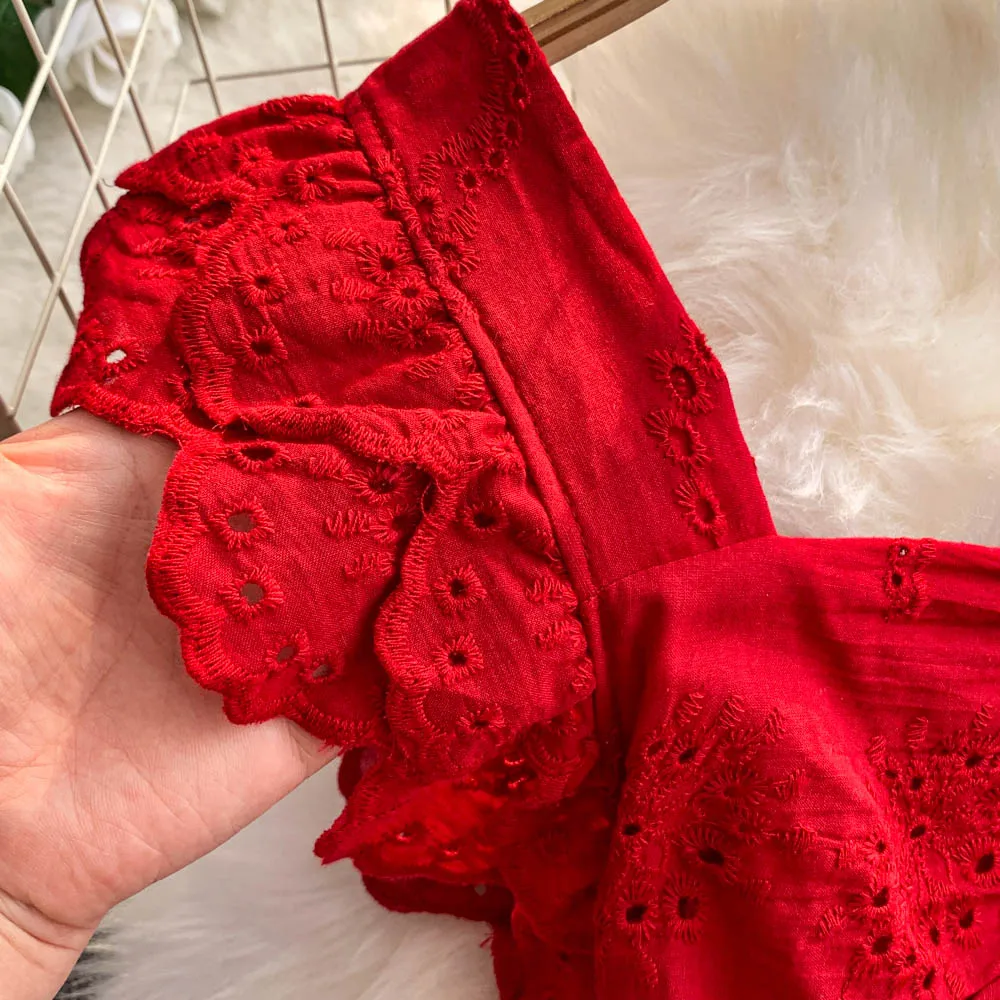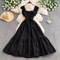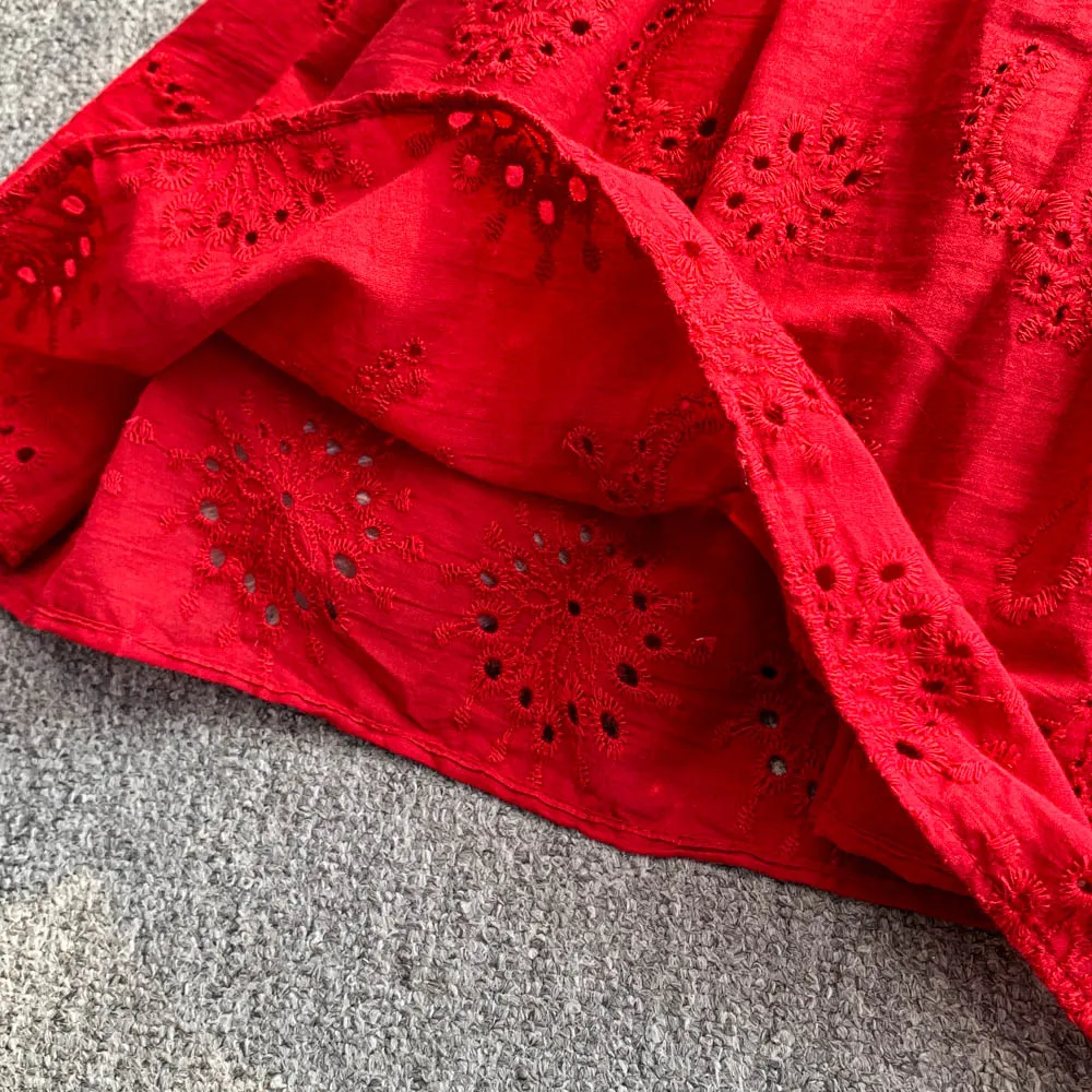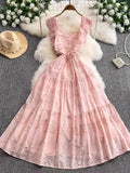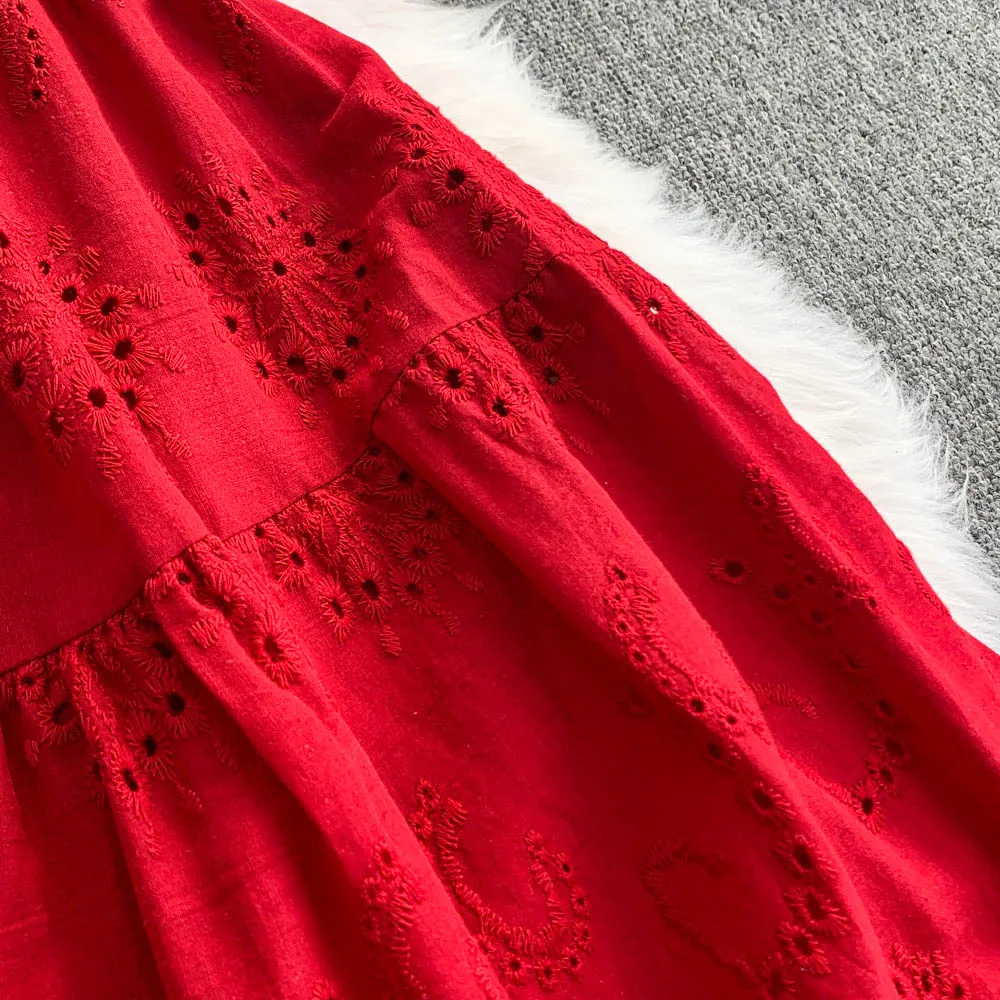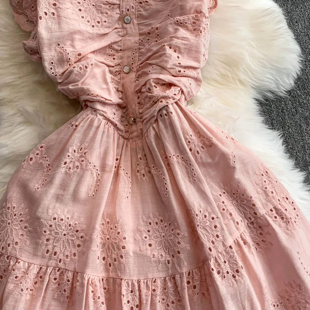 Ele Hollow out Embroidery Square Collar Dr Women Summer Faion High Waist Slimming Fairy Long Dr Vaion Sle