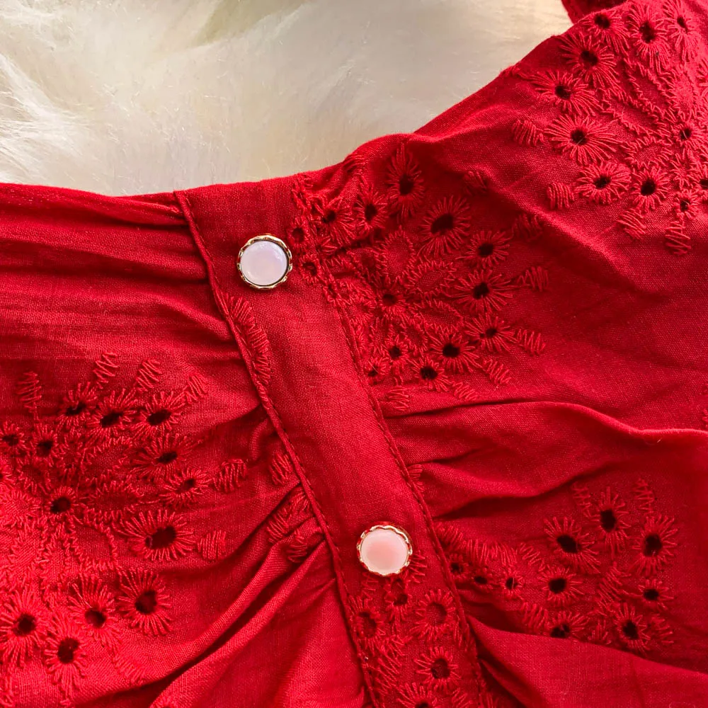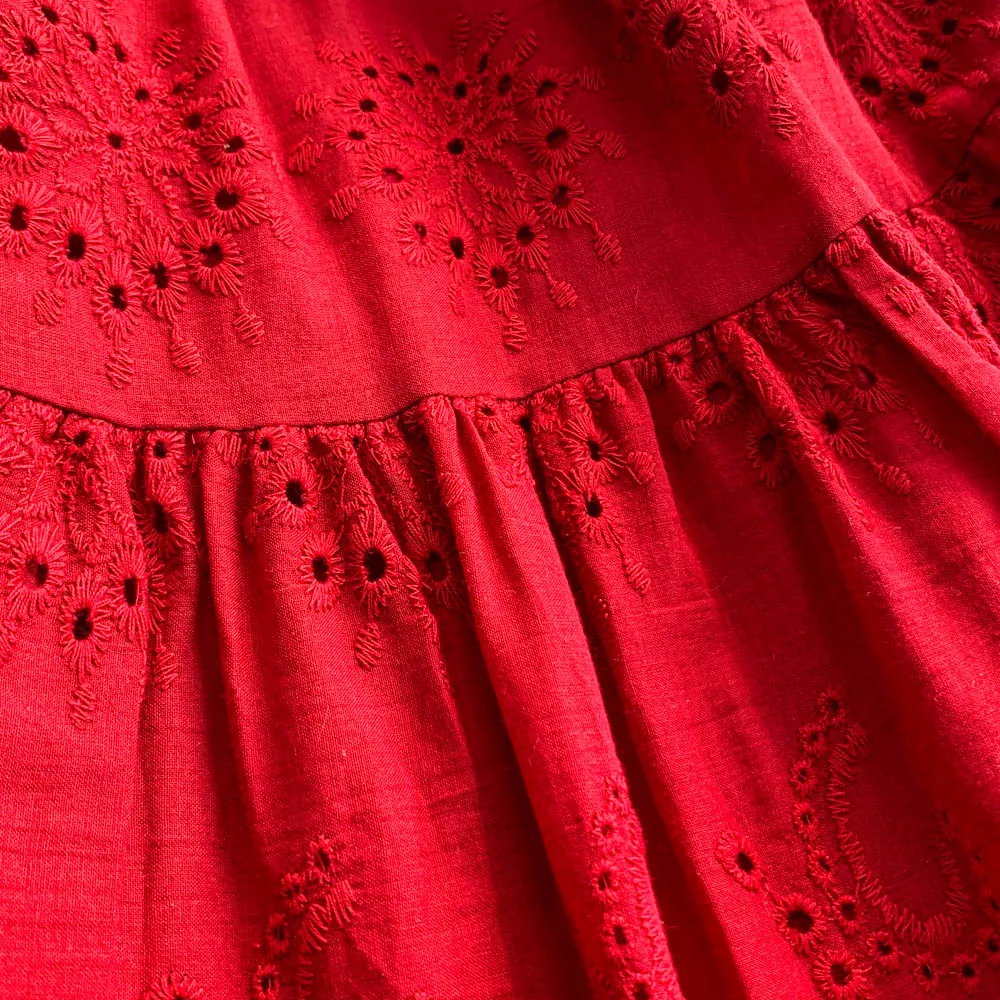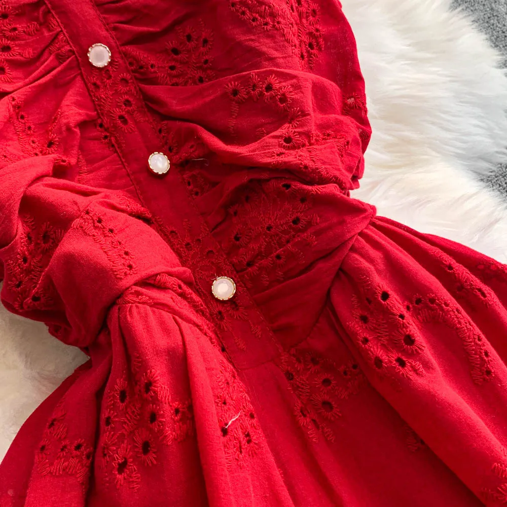 Embrace the elegance of French vacation style with this intricately embroidered dress, perfect for summer outings.