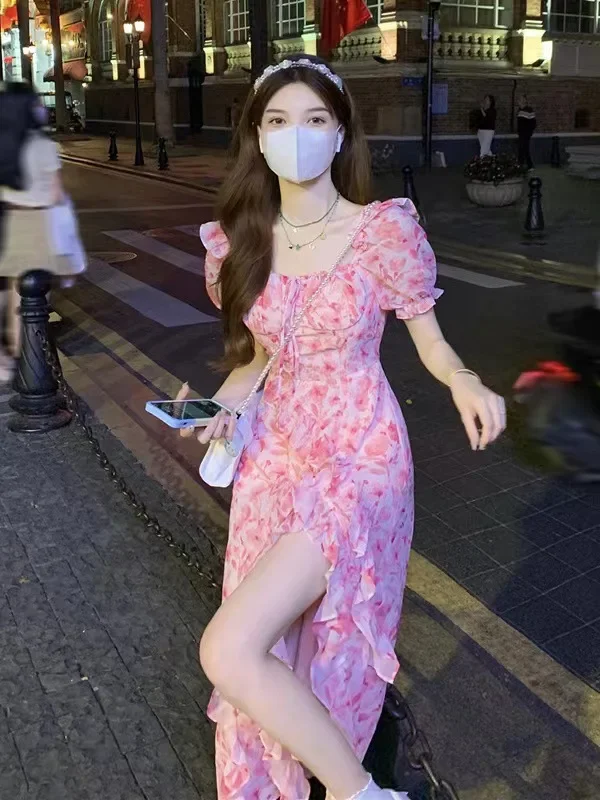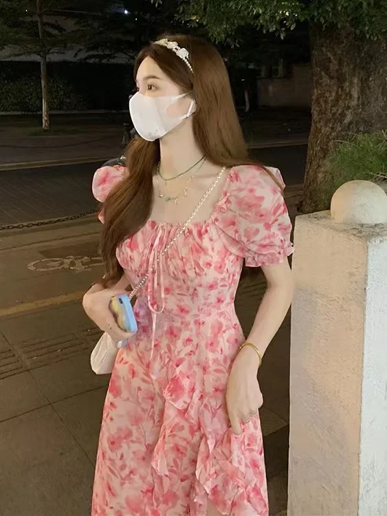 • Stylish Design :This pink sweet puff sleeve dress features a large swing floral pattern, making it a standout choice for any summer outing. Its A-line skirt design adds a touch of elegance and sophistication.