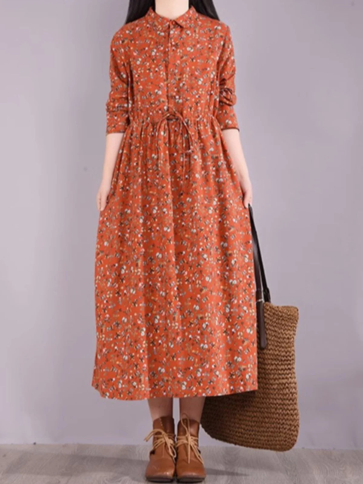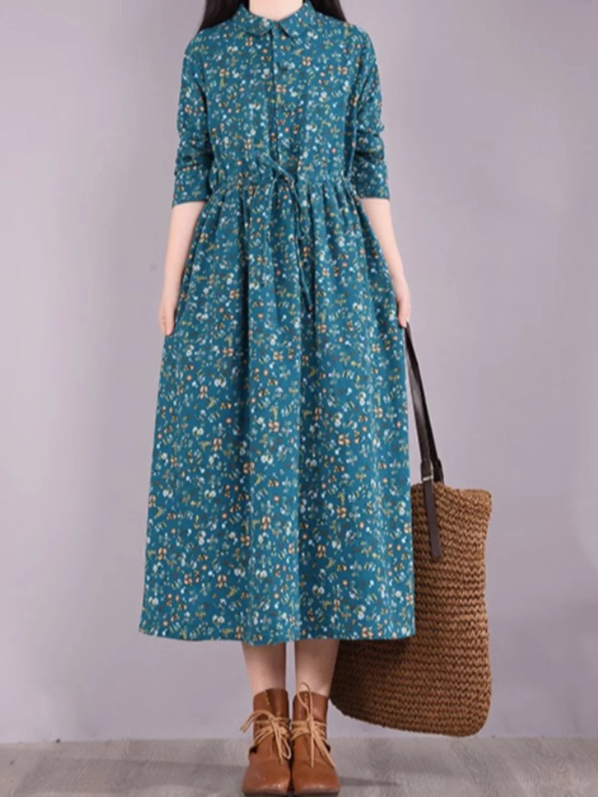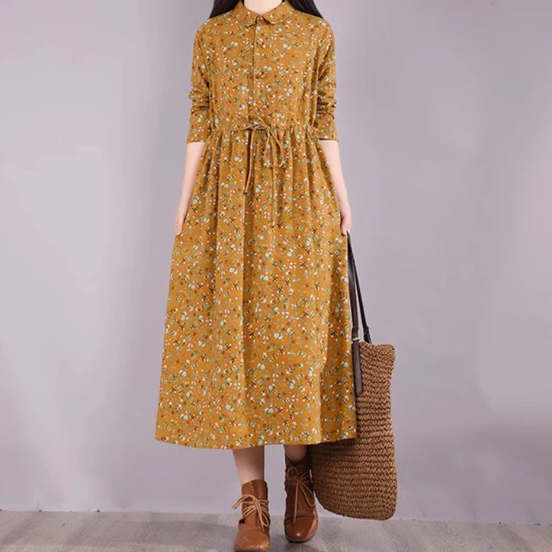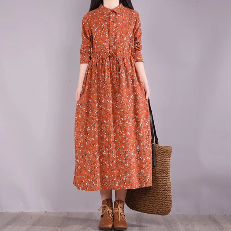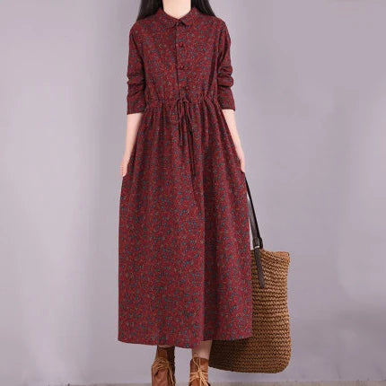 Made from cotton and linen, this dress offers comfort and breathability. It's perfect for daily wear or special occasions.