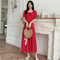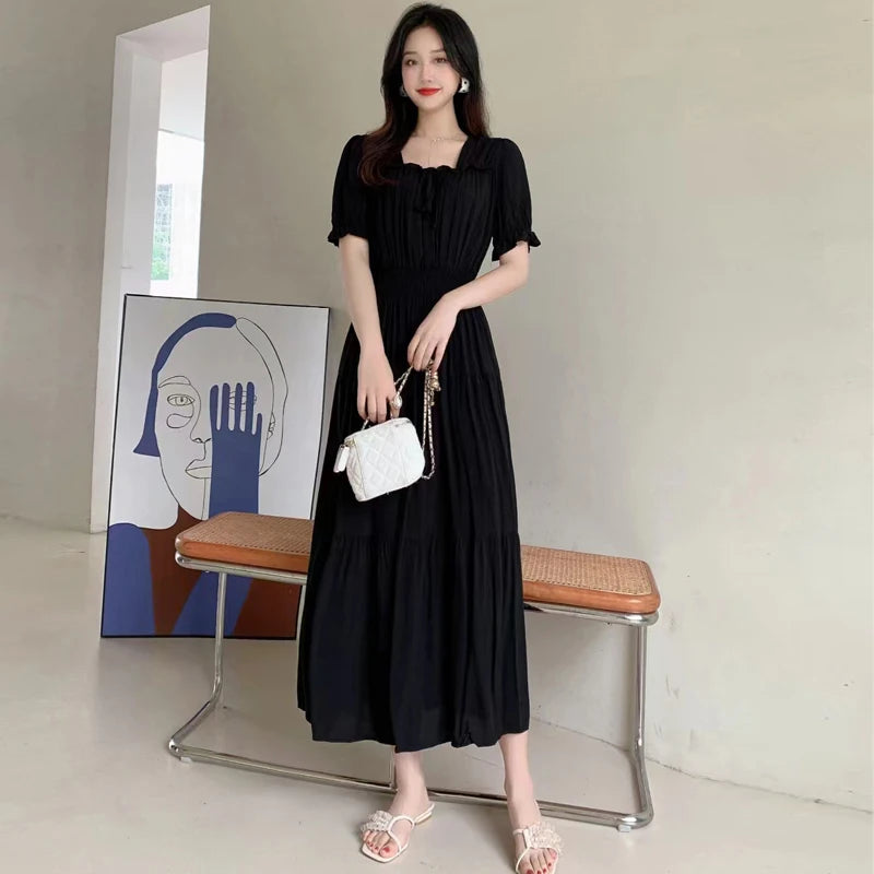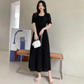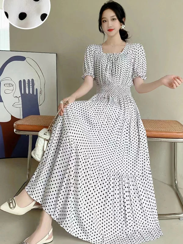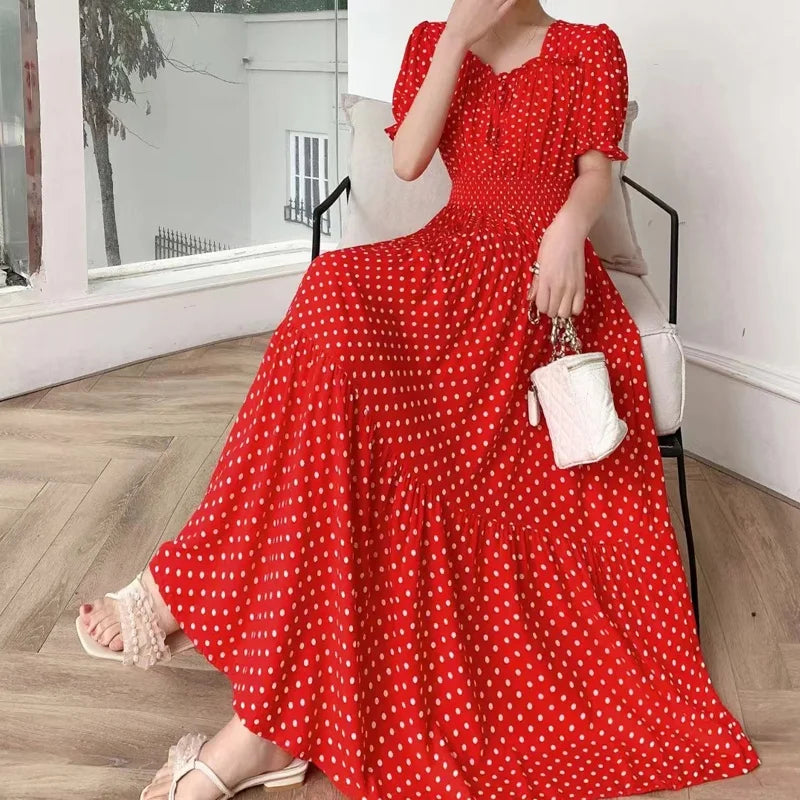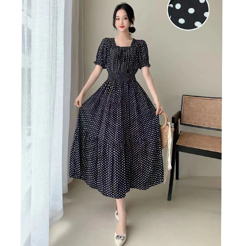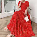 The flared skirt adds a touch of elegance, making it suitable for both casual and semi-formal occasions.