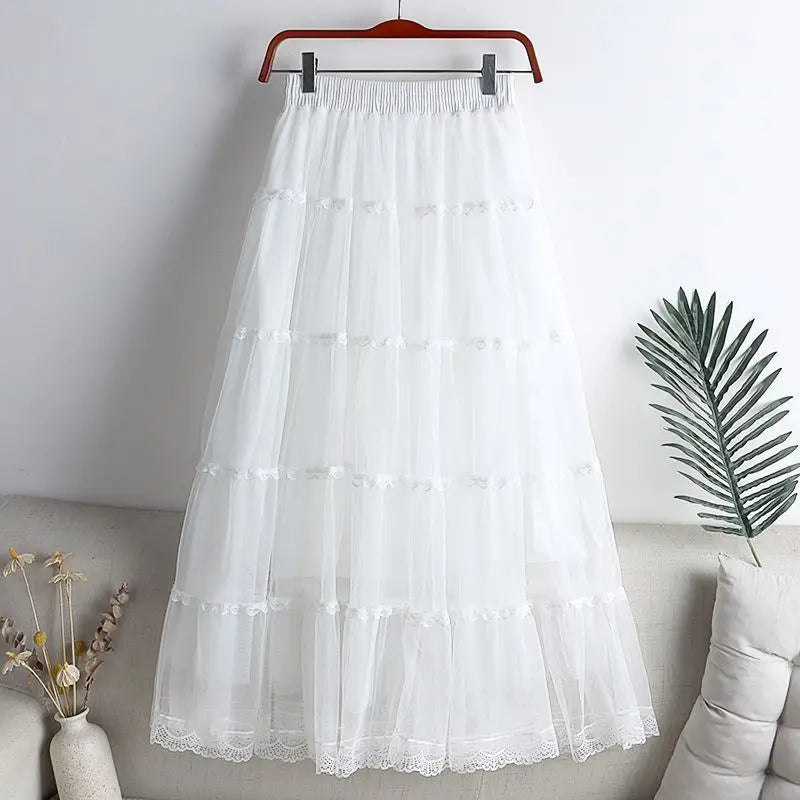 The lace trim adds a touch of elegance and sophistication, making this skirt suitable for special events or everyday wear.